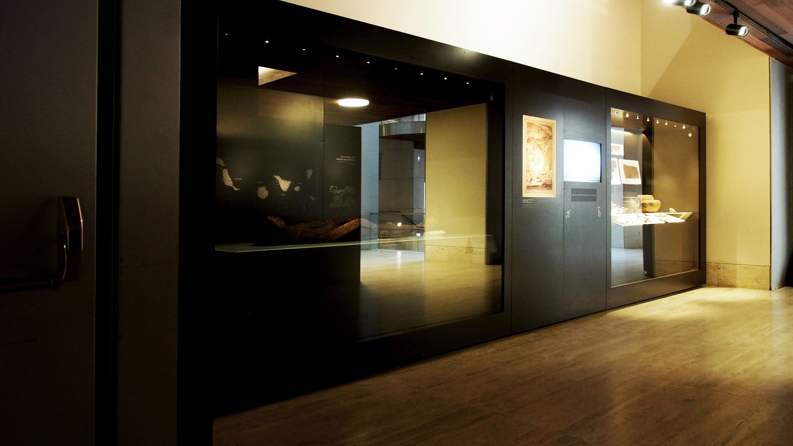 Cartela y vitrina con piezas arqueológicas de la cultura guanche